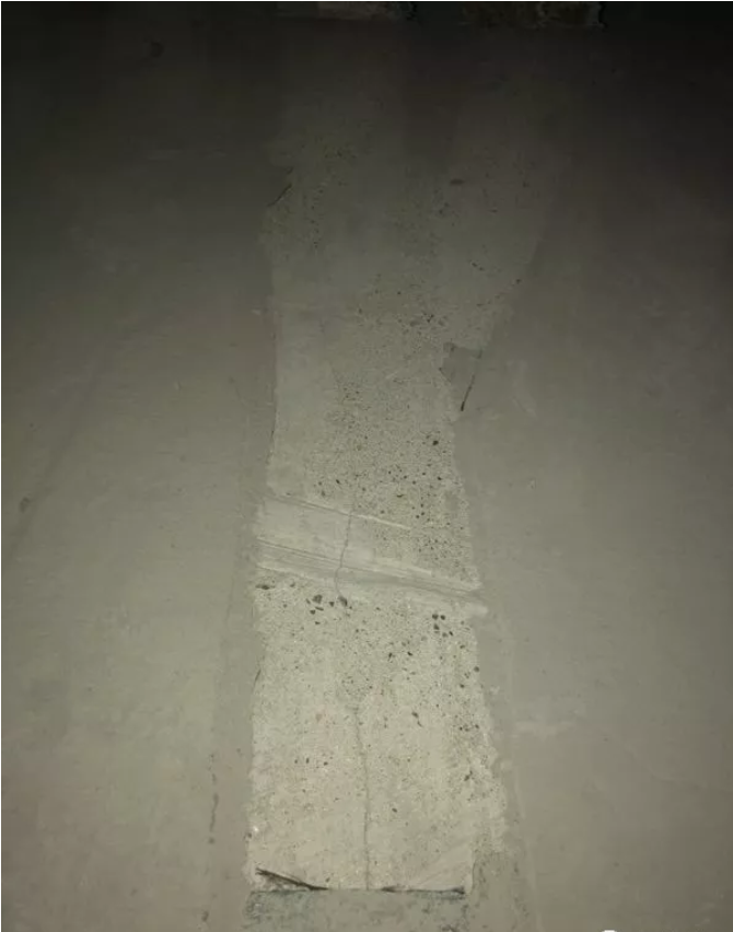刚开始进到房子里,地面几道很明显的长条黑色修补的痕迹特别炸眼,令验房师傅反应最强烈的,就是地面裂缝问题。
