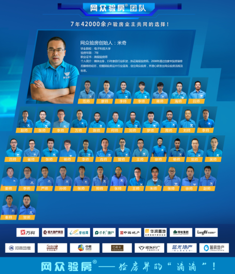 网众验房—验房界的"滴滴",国家高新技术企业。已服务恒大、万科、碧桂园、等上百开发商的4万业主。开通北京、天津、上海、广州、深圳、海南、杭州、西安、太原、武汉、郑州、昆明等40城市验房服务。延伸产业有装修、软装、监理、美缝、空气检测、保洁等。