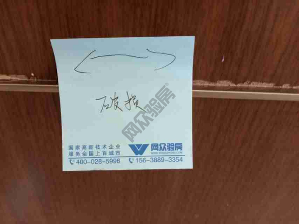 八、检测客卫北墙砖5块空鼓 玻璃门松动 南墙砖4块空鼓 西墙砖1块空鼓 马桶侧板脱落 门扇开关异响 门面框划痕