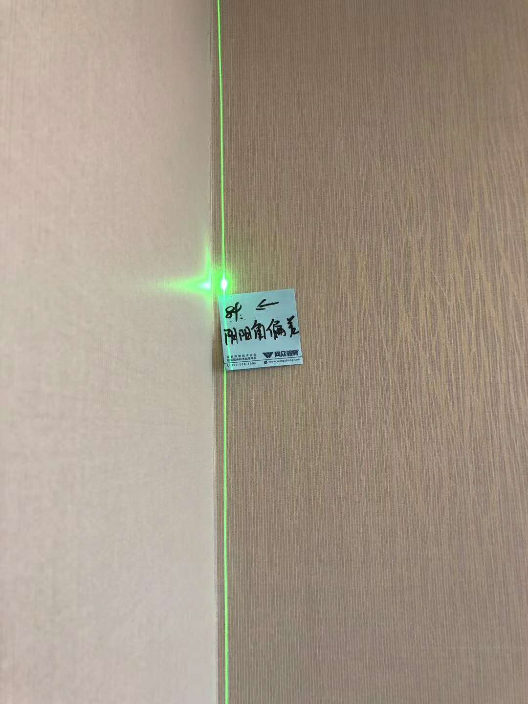 参考规范:《建筑装饰装修工程质量验收规范》GB50210—20184.1.9 室内墙面、柱面和门洞口的阳角做法应符合设计要求。设计无要求时,应采用1:2水泥砂浆做护角,其高度不应低于2m,每侧宽度不应小于50mm。防止损坏、垂直,抹灰偏差在4mm。抹灰阳角部位做2米高护角,高级抹灰偏差3mm,阴阳角方正。阴阳角多呈90度。验收墙面阴阳角时,要求阴阳角要求达到边线与房屋主体相互垂直与平行、墙角保证顺直与方正等效果。1:使用激光水平仪点位在两墙相接处,偏差即为垂直偏差。