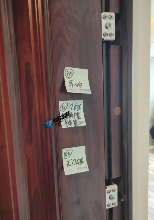 验房问题:入户门门扇异响,门框缺少装饰盖,无门碰严重等级:☆☆☆☆