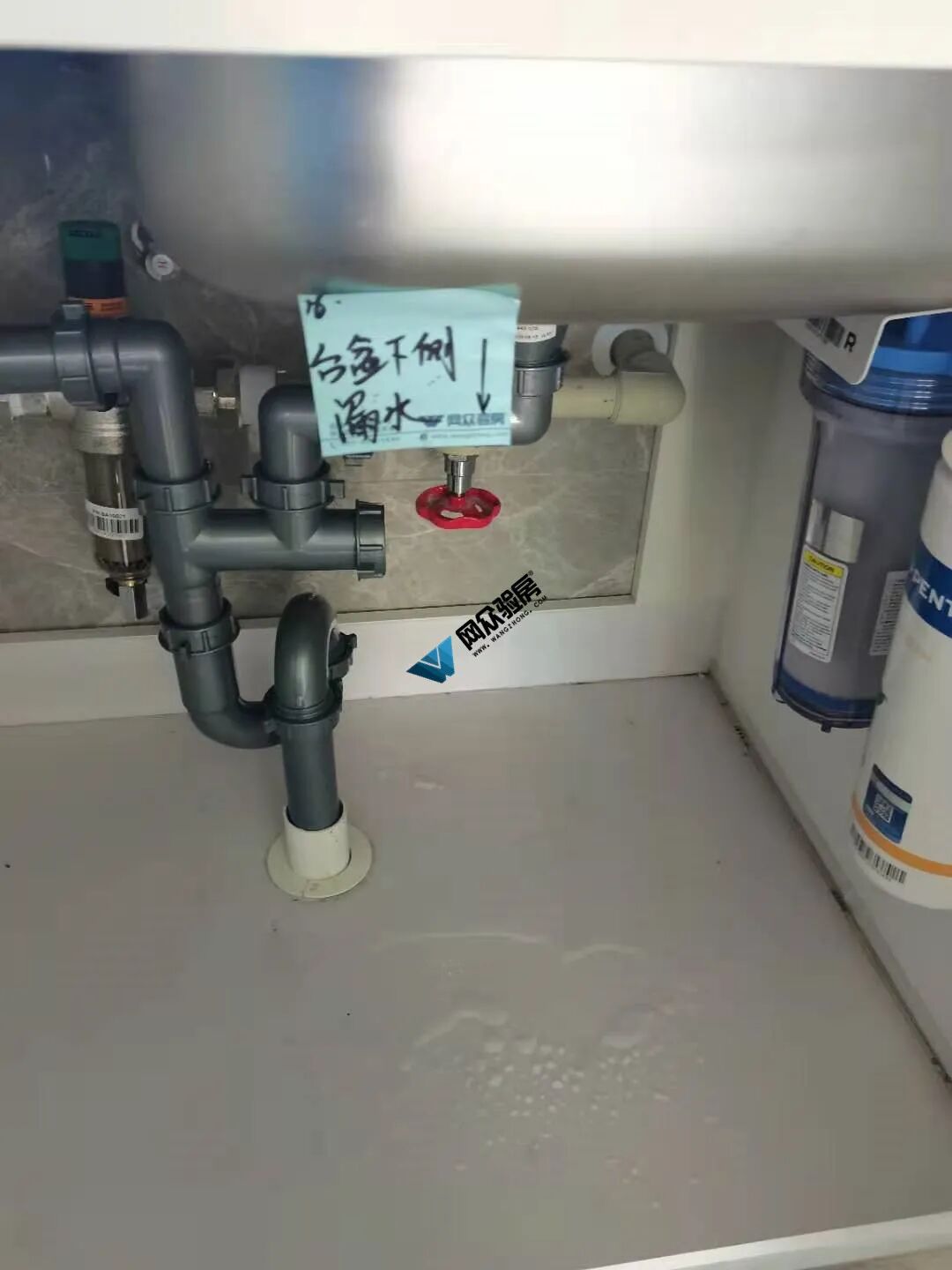 问题影响:台盆下方漏水会造成柜面锡纸积水、潮湿,并且可能会导致水渍污染产生异味等情况。