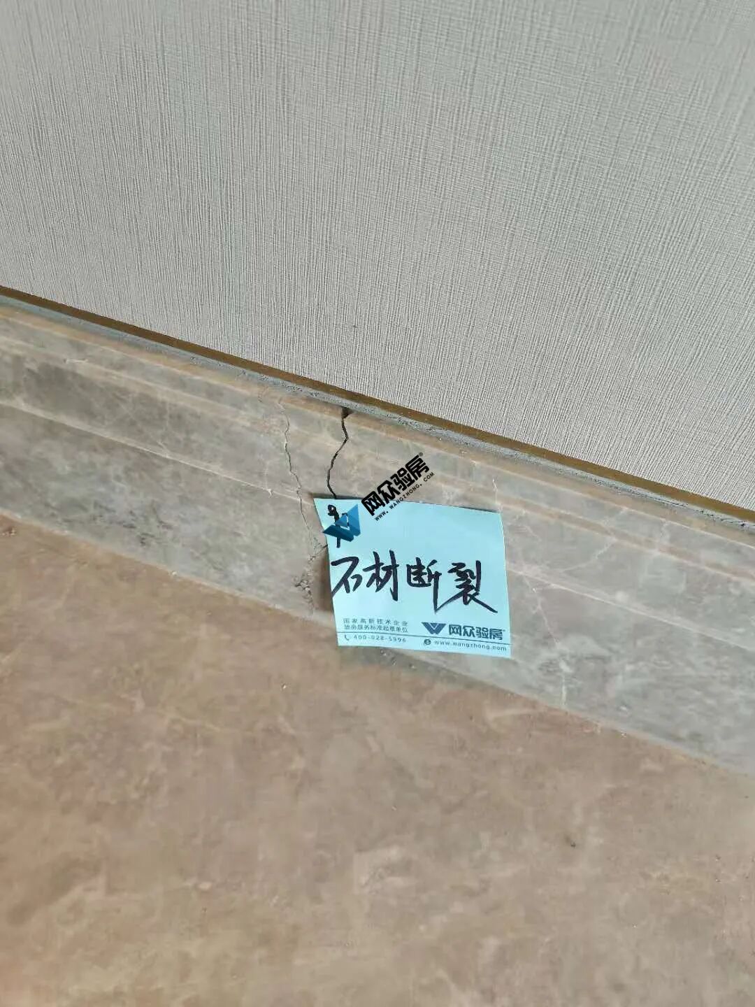 问题影响:地板裂纹不仅影响观感,同时石材出现裂纹则可能出现开裂的情况,石材开裂会有尖锐的边角出现容易导致伤害。