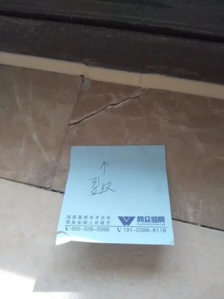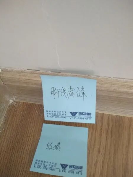 验房问题:过门石勾缝、门闭合晃动、门扇破损、北墙面粗糙、南北墙踢脚线漏缝、木地板多处软踏。