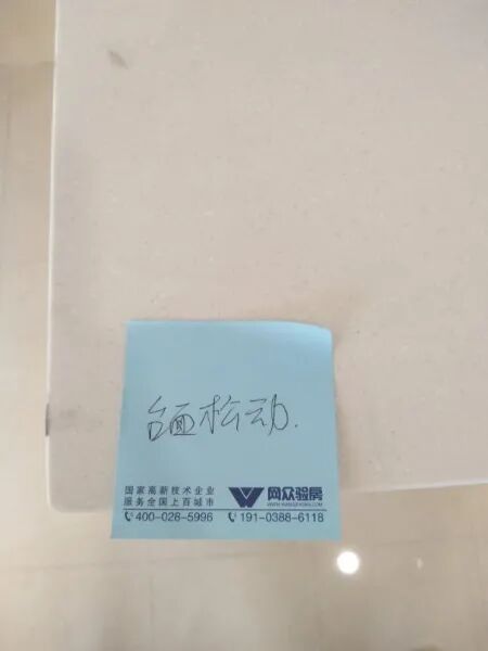 验房问题:门扇地吸调试、门套松动、南墙开关装饰条缺失、洗手池台面松动,边条胶开裂、水龙头松动、洗手池地柜内地线未连接,门高低差、洗手池台面碰伤一处、地板空鼓一处、窗户顶砖空鼓一处、马桶边未打胶、地漏盖缺失。