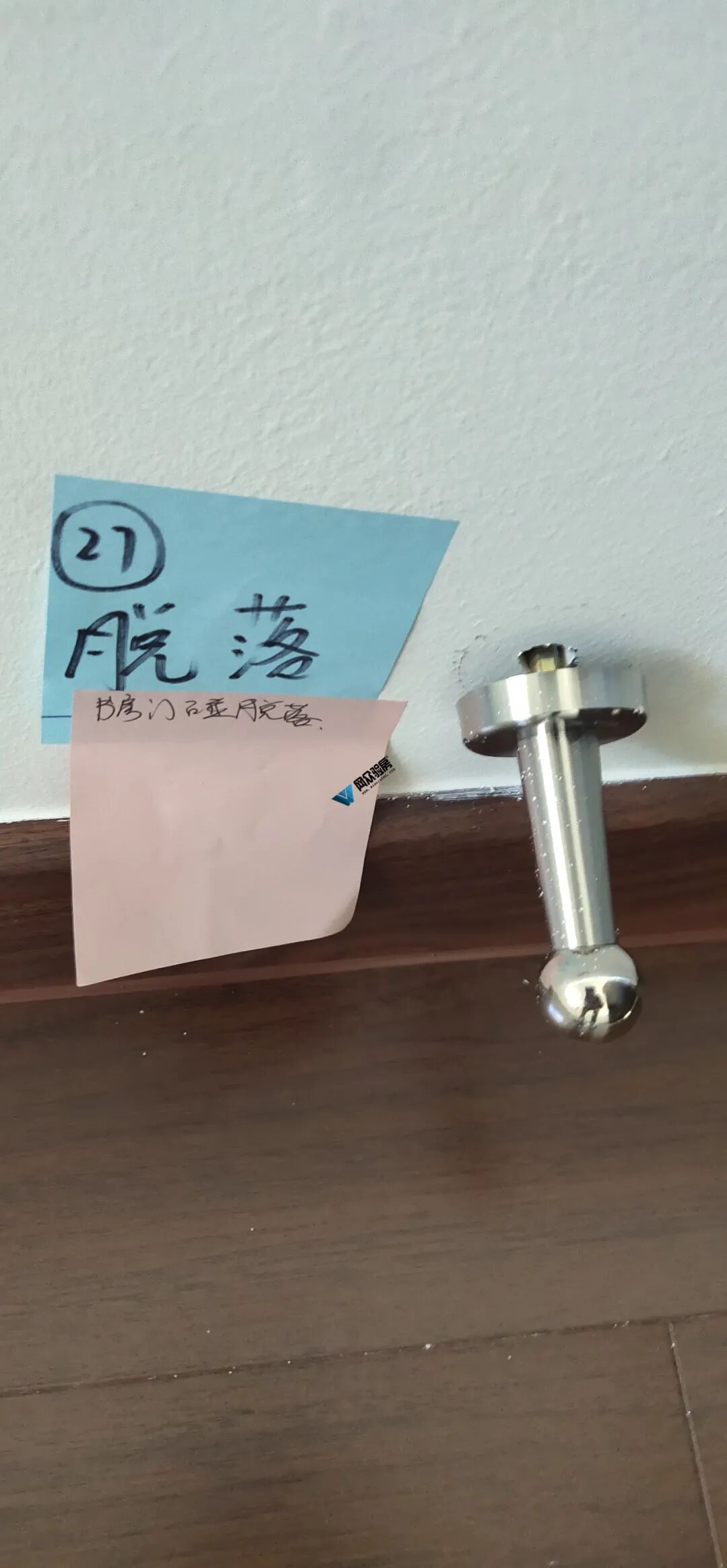 问题影响:入户门关闭晃动会影响使用同时长期的晃动也会导致门扇的松动等问题;门扇划痕不仅影响美观同时还会导致保护层的破坏。形成原因:入户门关闭晃动多数是安装不够牢固导致;门扇划痕多数是施工安装保护不当导致的损伤。解决方式:门扇关闭晃动可对门扇安装进行调试固定;门扇划痕可做补漆处理。形成原因:多数是安装不当导致的瓷砖下方的水泥等粘着物分布不均导致的。问题影响:墙面出现漏洞不仅会有松动,同时也会导致墙的松动的情况。形成原因:安装施工不当导致的墙体连接区施工过大,或墙体材料不良导致的孔洞的扩大。形成原因:多数是施工安装保护不当的导致的石材断裂。解决方式:石材断裂可以修复抛光或更换新的石材重新安装。问题影响:门吸脱落会导致门开关直接碰撞到墙面损坏门和墙面。问题影响:门扇关闭晃动会导致门扇的松动等问题发生。