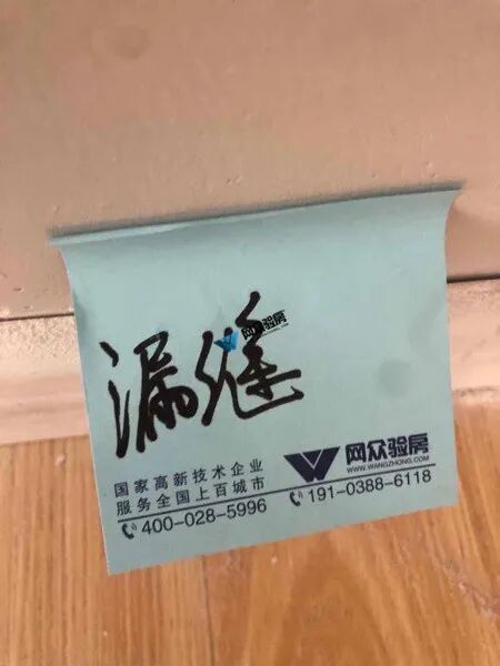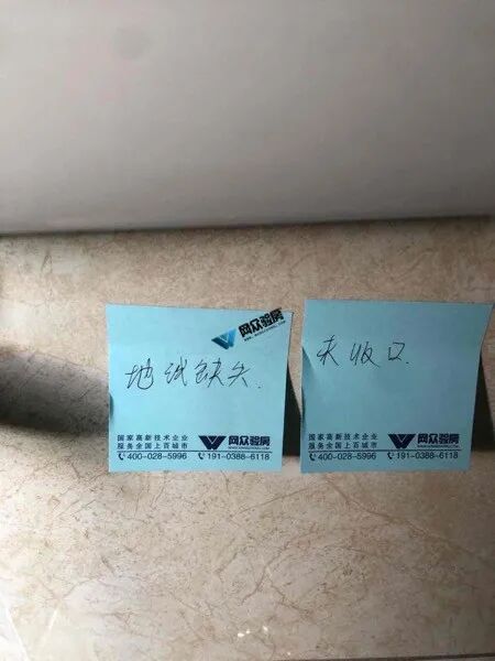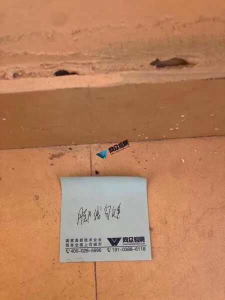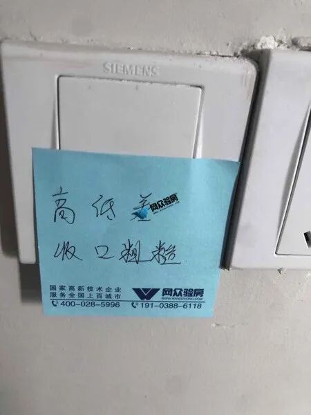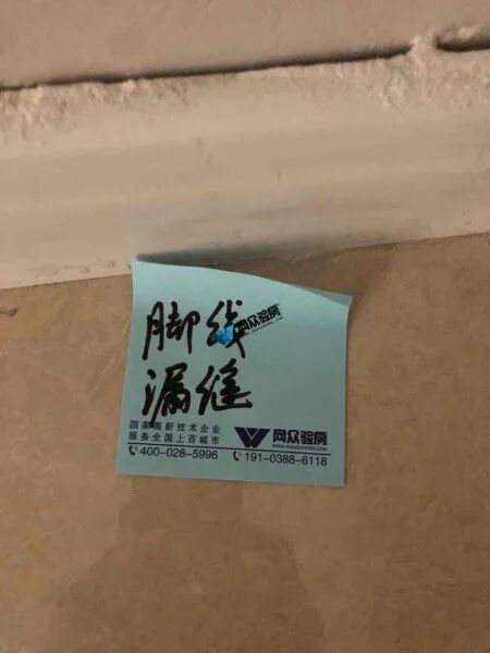 验房问题:脚线漏缝、天花粗糙、天花碰伤、夜灯收口、地砖空两处。