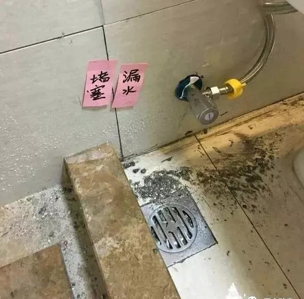 地漏堵塞也是严重的质量问题,特别是下大雨的时候,地漏堵塞不通畅,水就直接从地漏里往外冒水,所以在收房的时候一定要仔细查验!