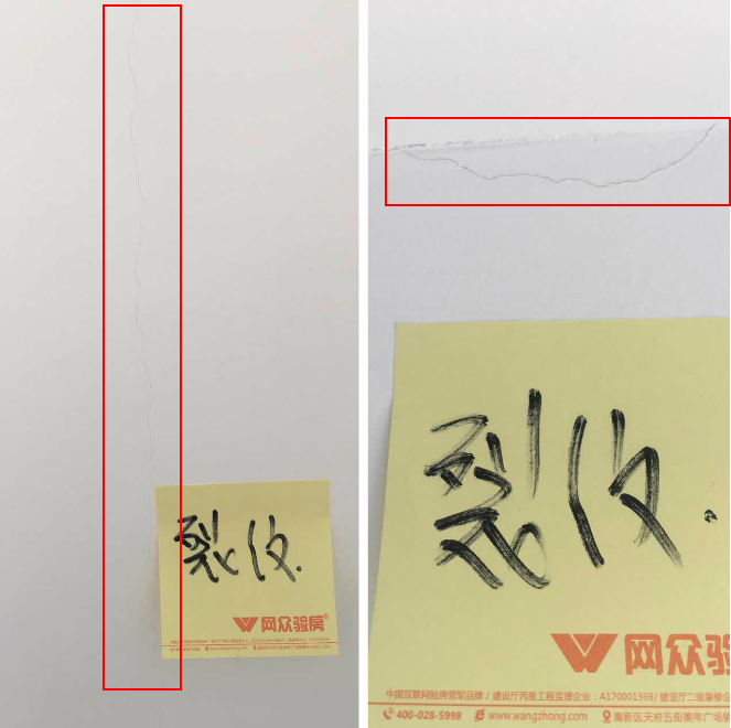 一般墙面出现上述问题,在交房前建筑商会做局部的抹灰处理。所以查看局部抹灰能判断出是否出现过上述问题。