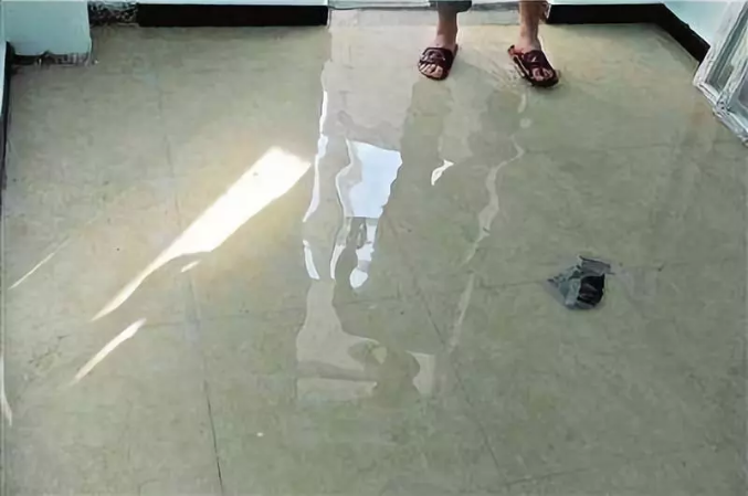 流出来的水不仅蔓延了整个房间,还导致楼下的厨房严重渗水。波及范围大,影响严重。