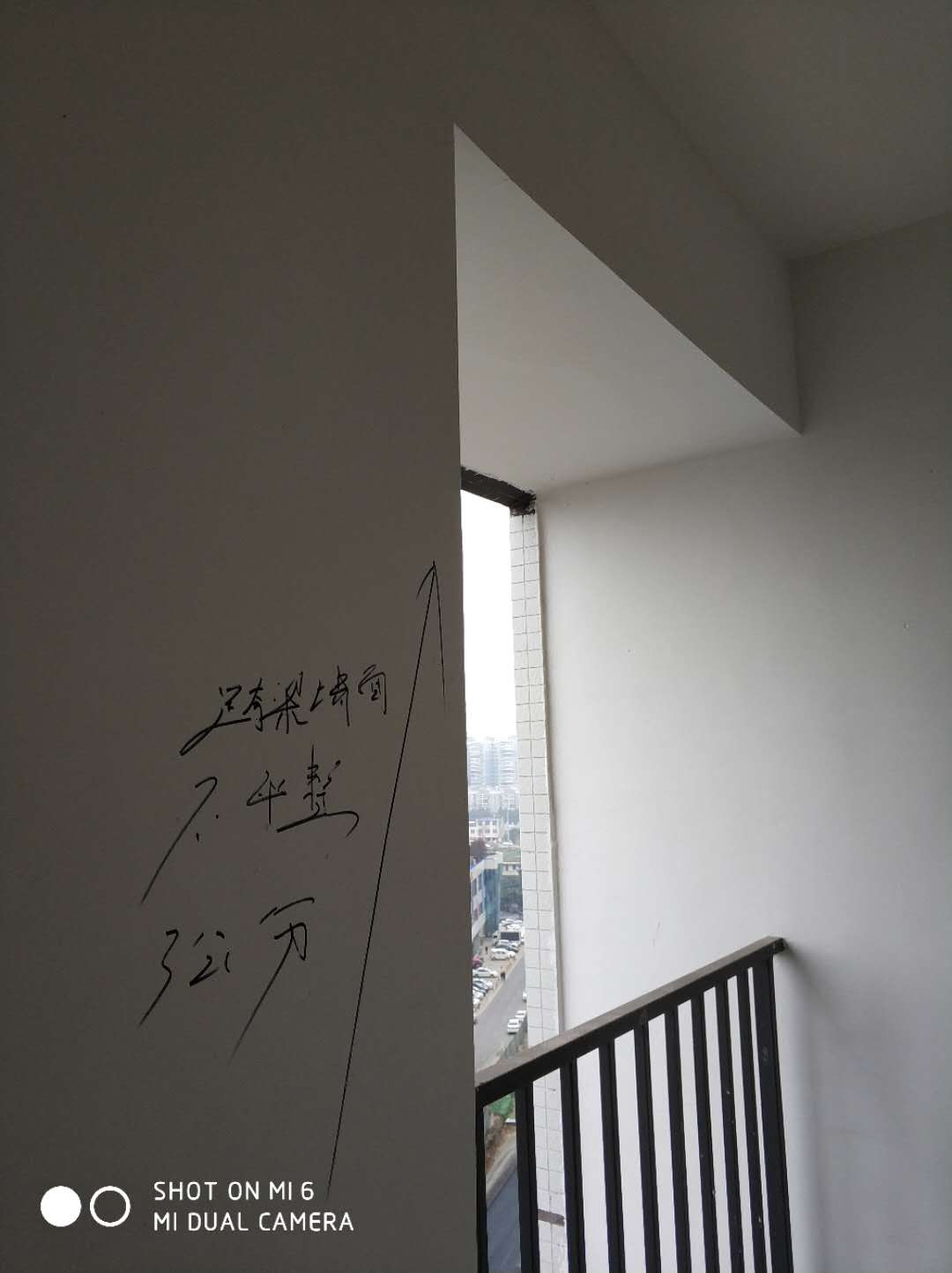 八、书房地面钢筋外露,阴阳角不顺直3公分,顶板修补开裂