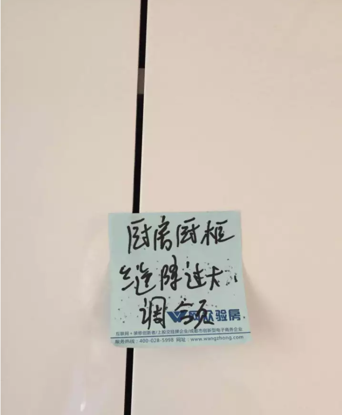 厨房:厨房内侧门框与墙砖贴合缝隙较大;橱柜安装缝隙较大需调试合页;橱柜与墙边缝过大需打胶。