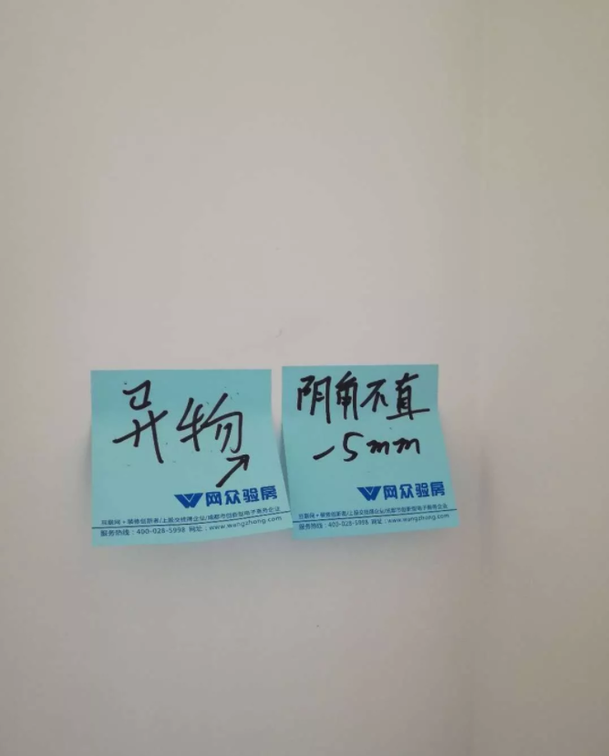 2、墙面两处污染、三处粗糙;