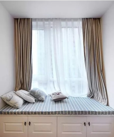 一般来说卧室配有飘窗,不但可以享受充足的室内光线,还可以饱览室外秀美景观,主卧的飘窗更注重体现温馨宁静。飘窗还可以作为很不错的观景台。躺在窗台上,上面放上两个靠垫,或坐或卧,白天看车水马龙,晚上看满天星斗。利用飘窗的另一方面是其充足的光照。