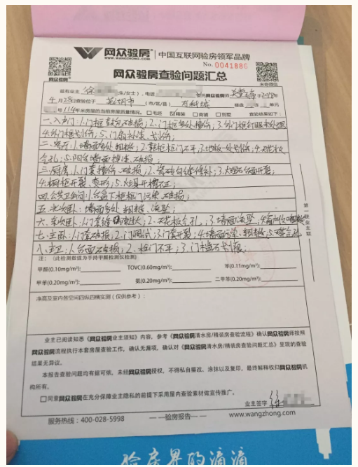 以上是本次芜湖网众验房团成员查验的业主徐先生万科城精装房的所有问题,相信大家对小编的介绍还是很满意的!验房还是芜湖网众强!