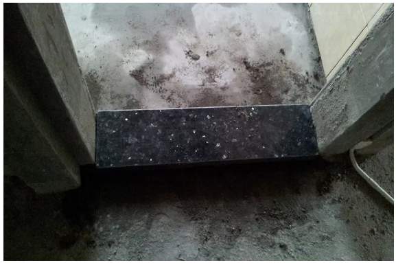 先铺设门槛石,再贴地砖,干湿分离保障加强也防止淋水渗出。