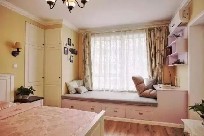卧室,飘窗改造成书房用,底下做了排抽屉,可以收纳一些小物品。