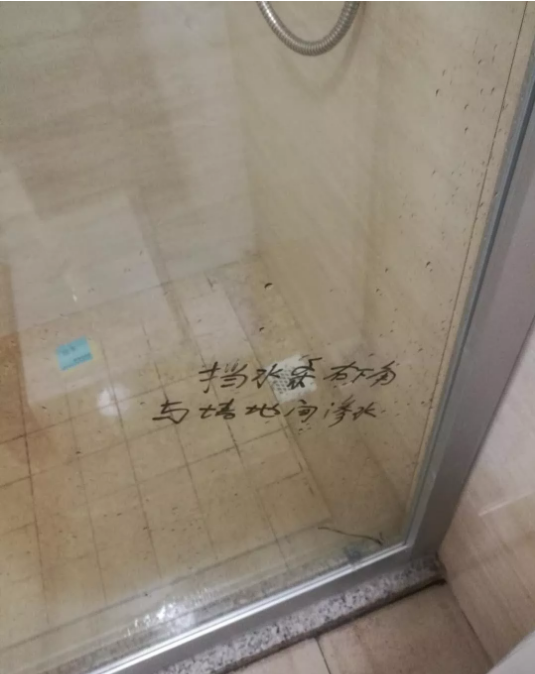 2、淋浴间玻璃墙下方挡水条与墙、地间密封不严漏水