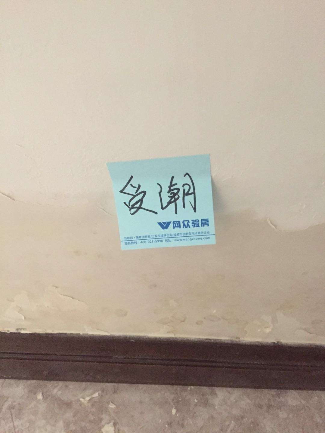 根据上次初验,大部分问题均未处理。目前最严重是室内每个房间墙面均受潮严重,距地约30cm处。面积大,墙纸污染严重。