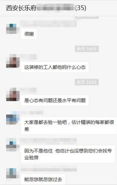 上次在西安长乐府进行了第一批验房后,业主们都感觉找到了组织啊!看到了本期的问题,大家都意识到了找一个专业的第三方验房机构到底有多么重要,纷纷加入验房拼团。不信?看图!