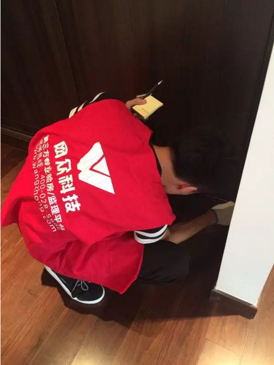 网众廖师在验厨房,看不到橱柜顶,还站上了“梯子”,只是为了不放过任何可能出现问题的地方。