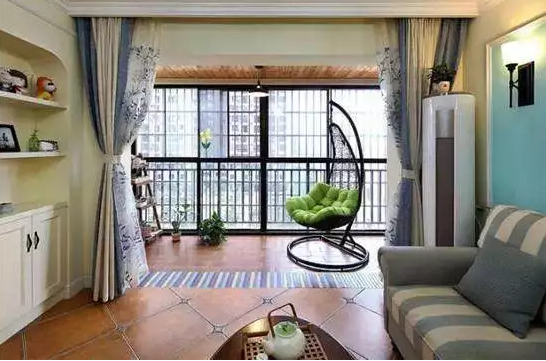 这样的话,你可以把阳台作为客厅空间的一个补充来使用。尤其是小户型,如果空间不够用,就别考虑分区了,完全可以把客厅的阳台造成休息区或者是阅读角,那么客厅就又具备了更多的功能。