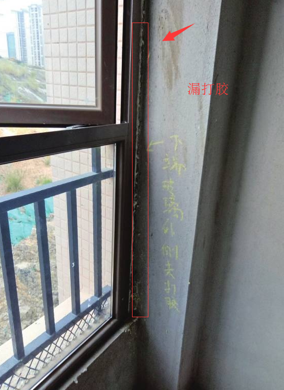 问题1:“窗户玻璃不打胶,这明显是施工工人疏忽大意了。”验房师在罗女士位于佛子岭路某楼盘的毛坯房内检查发现,主卧室窗户的玻璃边缘未打任何胶。验房师告诉业主,下雨天很可能会有遇水渗入,导致内墙发霉。