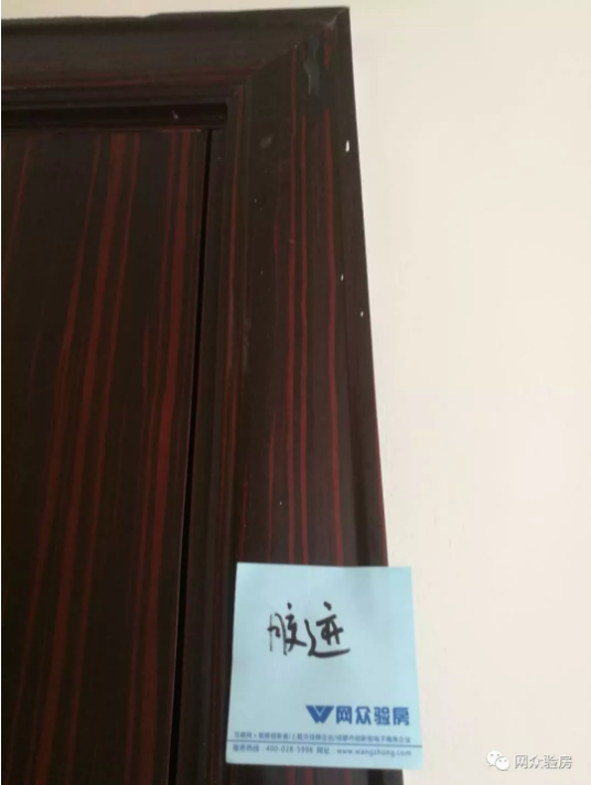 1、入户门套右边局部颗粒、磕碰、划痕,左门套与墙面缝隙,门槛左右边未勾缝